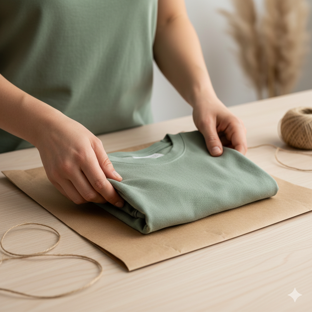 L’emballage est souvent le point faible de la mode en ligne. Chez nous, chaque commande est expédiée dans un packaging 100% recyclable et compostable, sans aucun plastique à usage unique. Nous optimisons également nos flux de transport pour réduire nos émissions de CO2.