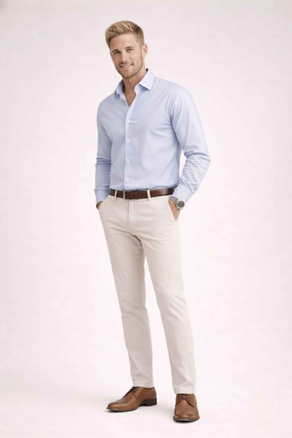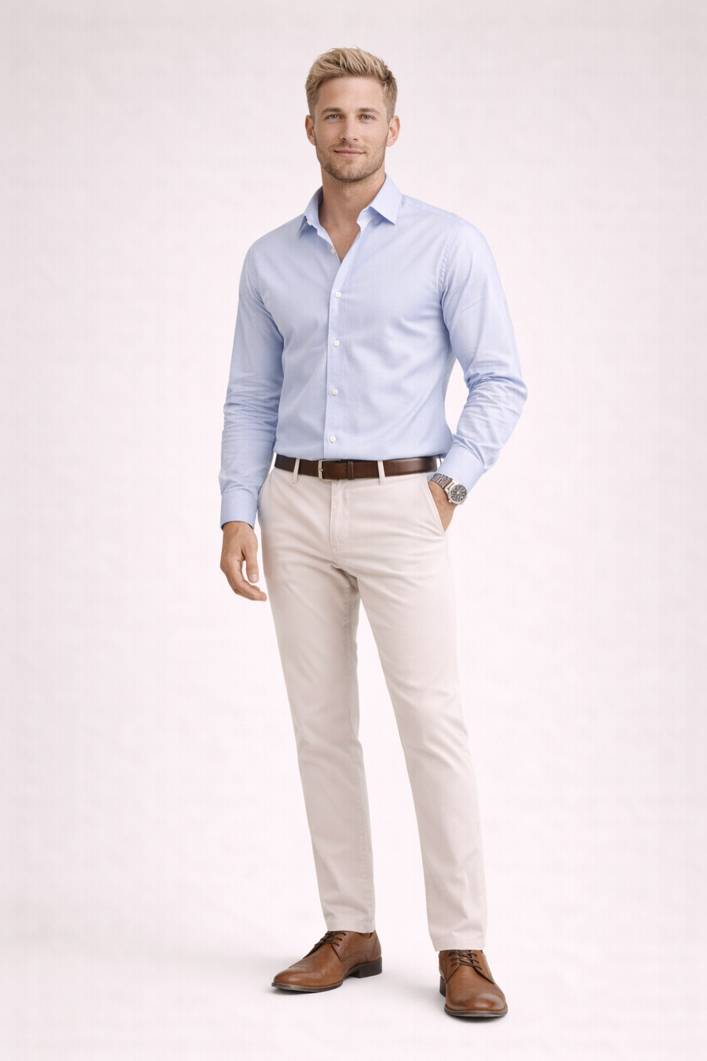 Son ton neutre apporte une profondeur subtile et une touche d’évasion à sa silhouette, tandis que sa coupe équilibrée structure la tenue avec élégance sans jamais contraindre le mouvement. Cette chemise se porte idéalement avec un chino clair et des chaussures en cuir pour une allure chic et lumineuse, ou de manière plus décontractée avec les manches retroussées pour un esprit Riviera. Associée à un short en lin ou un pantalon fluide, elle compose un look estival sophistiqué tout en étant classe, sans effort.