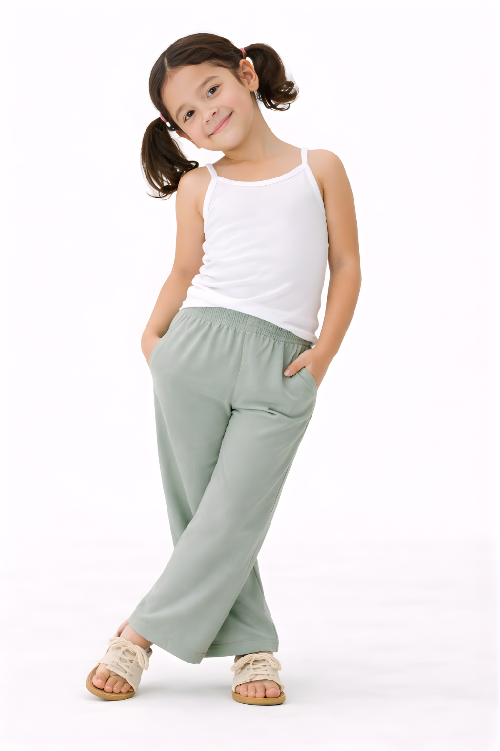 Le pantalon AERA en fibre recyclée est pensé pour offrir liberté de mouvement et confort au quotidien. Sa coupe fluide et sa taille élastiquée permettent aux enfants de bouger facilement tout au long de la journée.