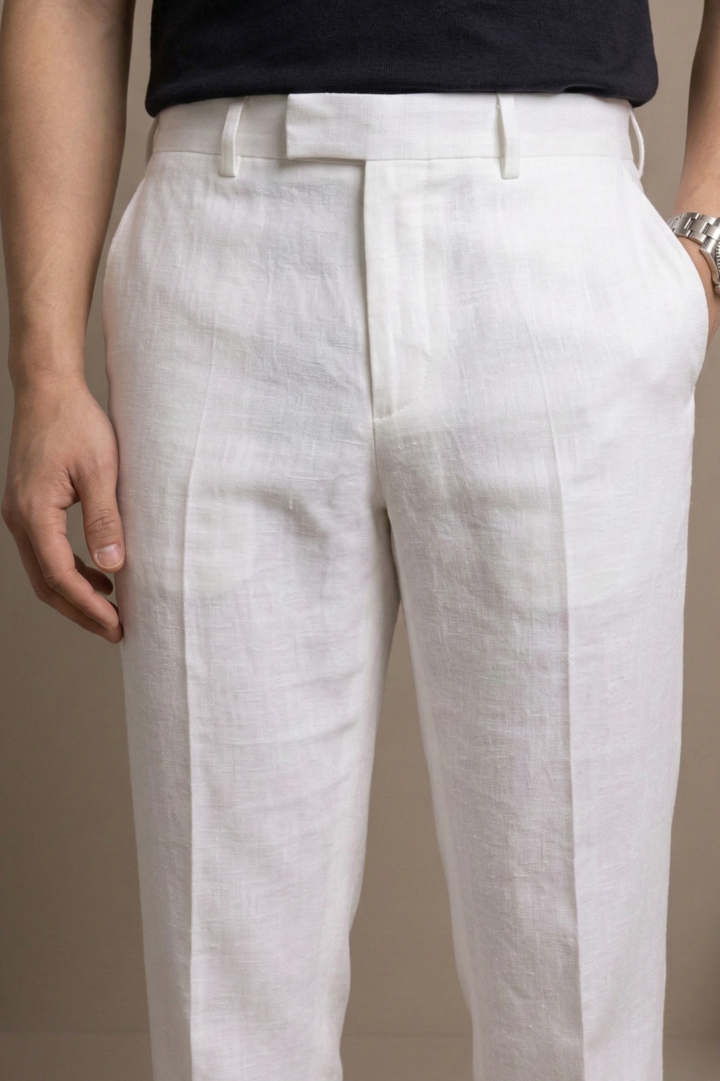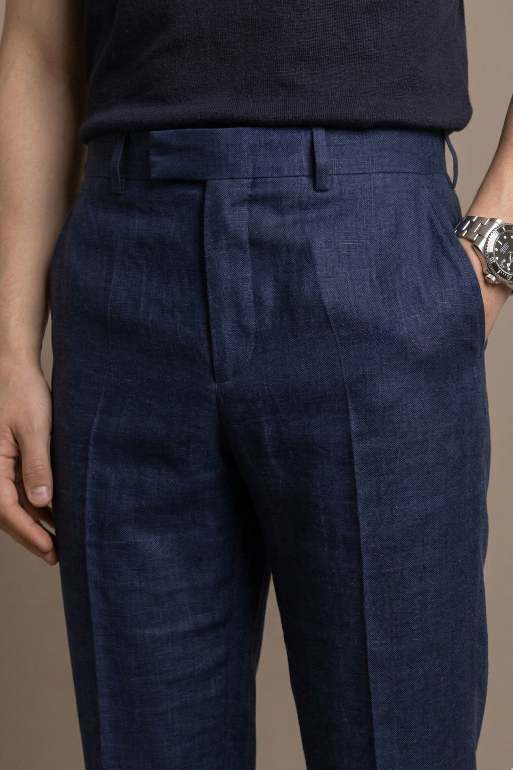 Ses coloris sobre, naturel mettent en valeur toutes les carnations et s’harmonise parfaitement avec les tons terreux ou les basiques d’un vestiaire masculin minimaliste. Ce pantalon en lin est une pièce de caractère, pensée pour accompagner les moments d’exception comme les instants suspendus du quotidien avec distinction et naturel.