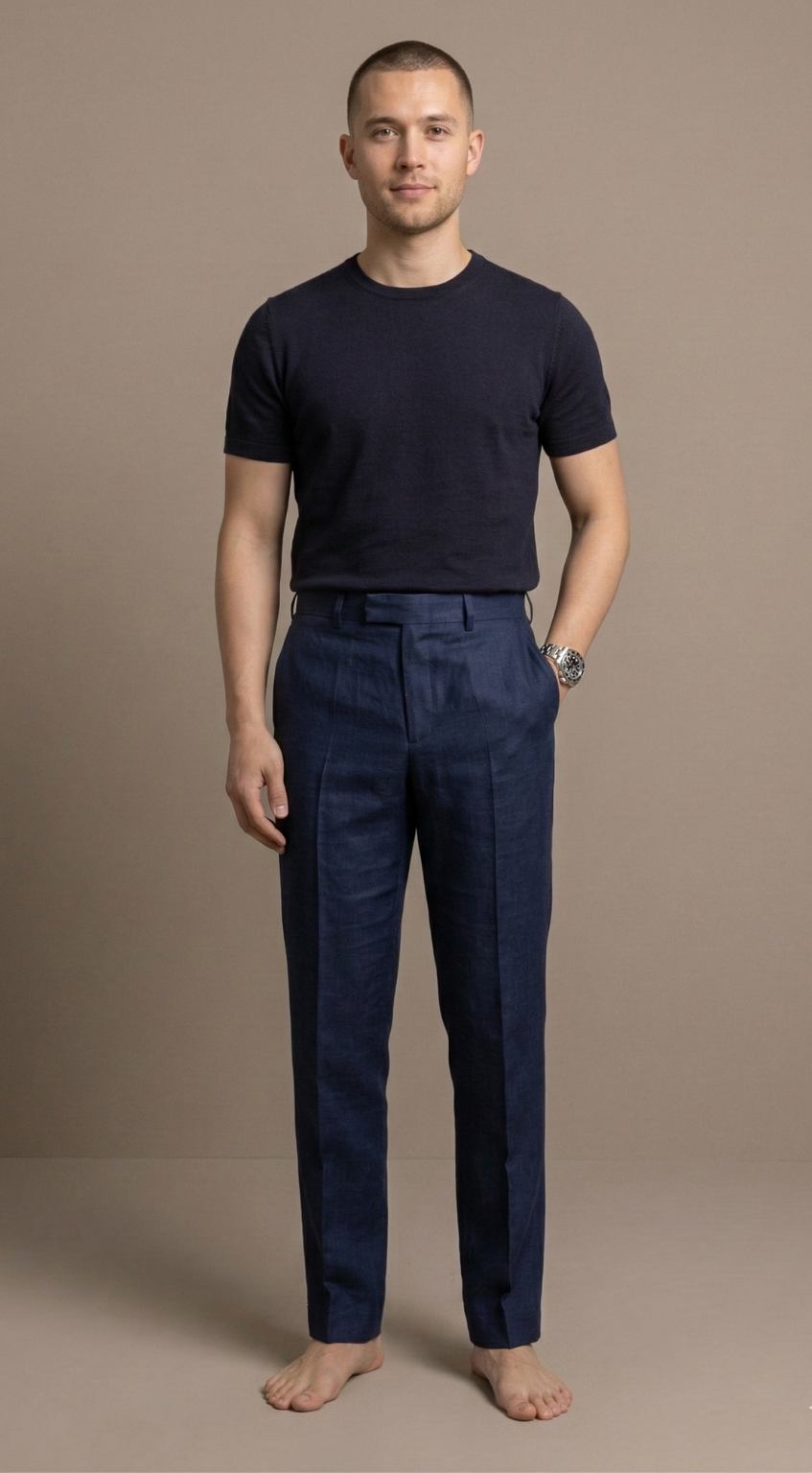Son ton uni apporte une profondeur subtile et une touche d’évasion à sa silhouette, tandis que sa coupe équilibrée structure la tenue avec élégance sans jamais contraindre le mouvement. Ce pantalon en lin se porte idéalement avec une chemise noir ou claire et des chaussures en cuir pour une allure chic et lumineuse, ou de manière plus décontractée avec un t-shirt simple pour un esprit Riviera.