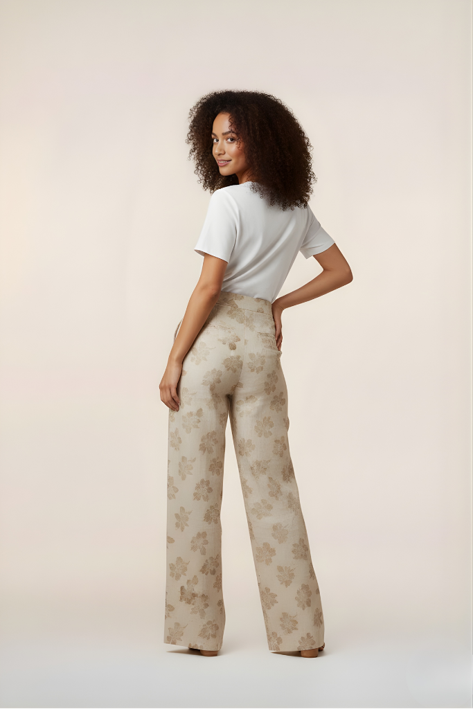 Le pantalon FLORA apporte une touche de douceur naturelle au vestiaire quotidien. Confectionné en coton biologique, il associe confort et légèreté grâce à une matière respirante et agréable à porter.