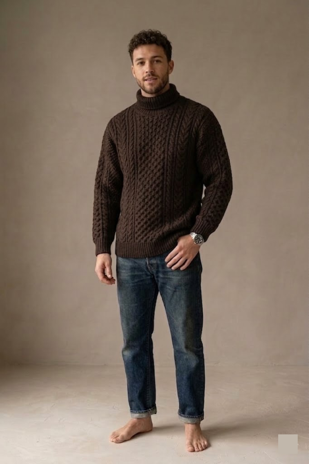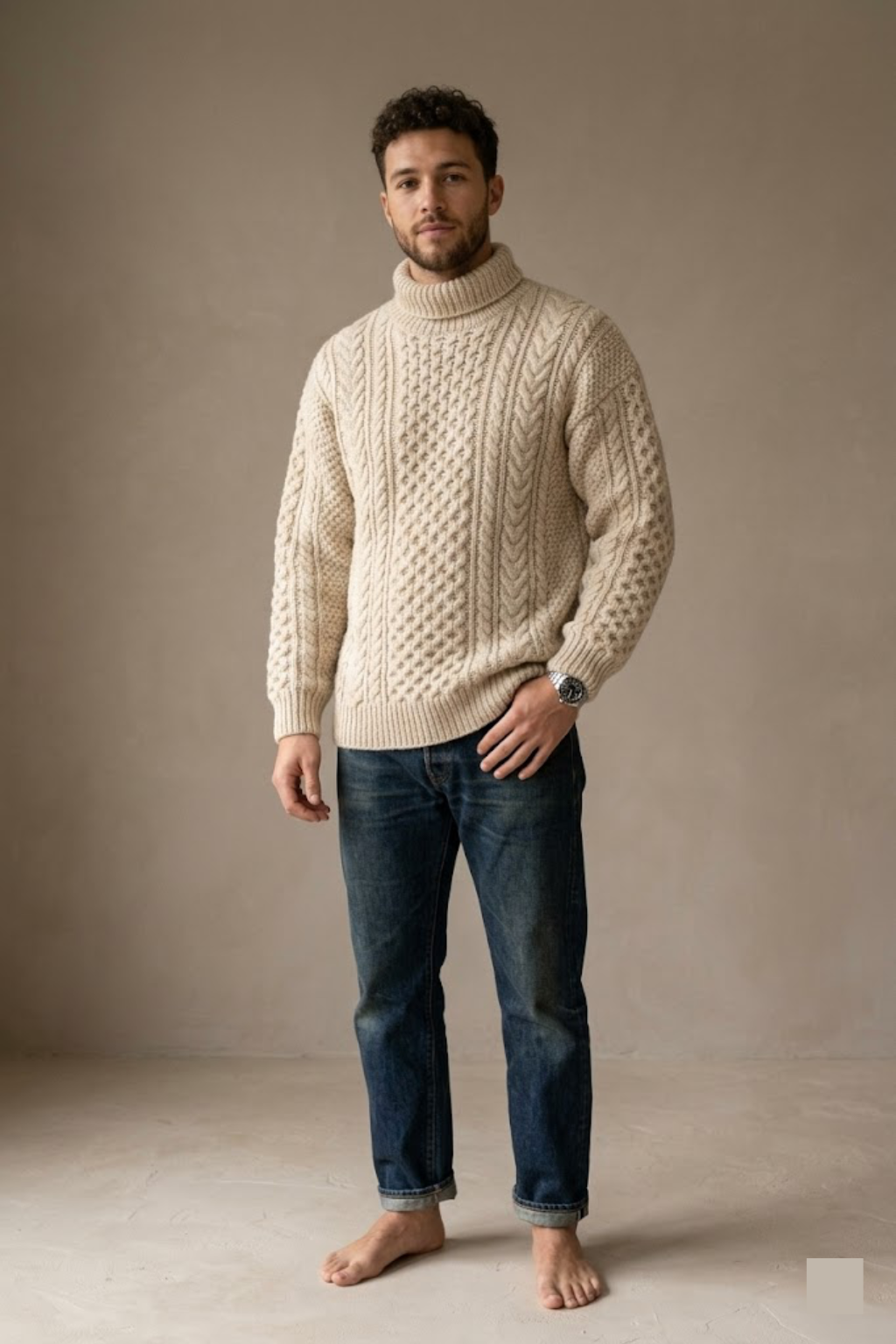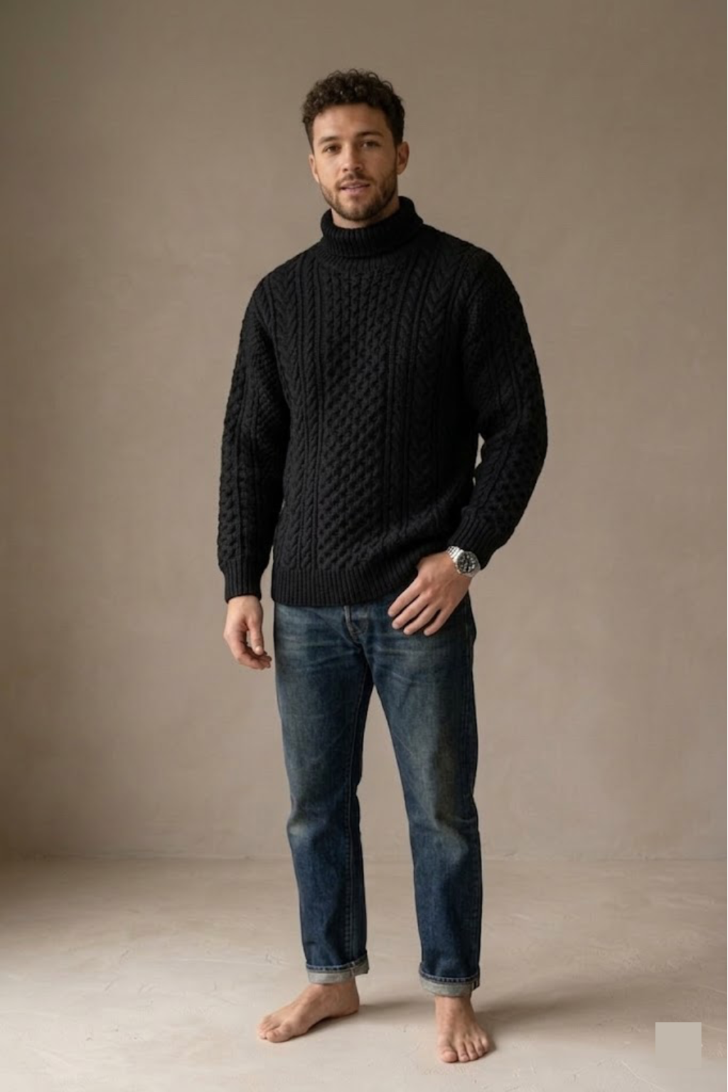 Le pull ARMOR incarne l’équilibre parfait entre l’héritage d’un savoir-faire traditionnel et la vision d’une mode durable. Inspiré par la texture des mailles authentiques et la nécessité d’un confort protecteur, il réinterprète le pull à col roulé dans une laine premium éco-responsable d’une douceur exceptionnelle. Sa maille travaillée en relief, à la fois dense et respirante, offre une isolation naturelle contre les éléments tout en conservant une allure sophistiquée et intemporelle, du matin au soir.