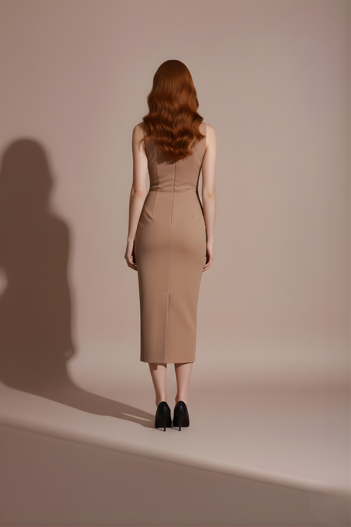 La robe FORMA incarne une élégance structurée et essentielle. Pensée pour sublimer la silhouette sans artifice, elle se distingue par une coupe midi ajustée et des lignes nettes, offrant une allure affirmée et intemporelle.
